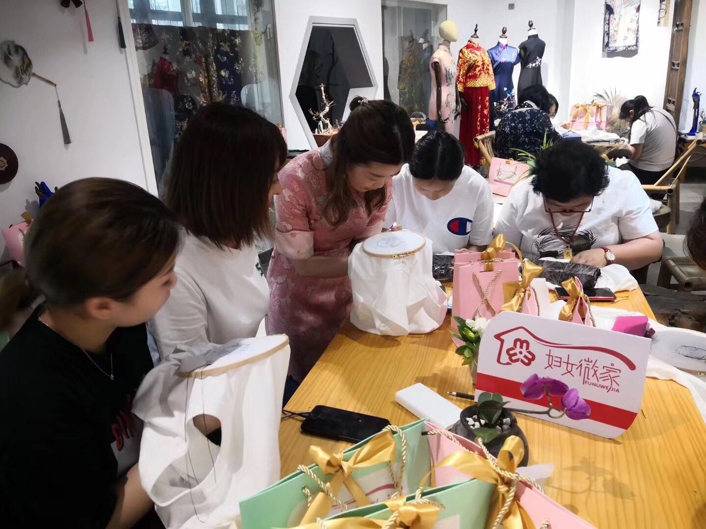 当天下午一点,妇女姐妹们来到绣裳花妇女微家,桌上已经摆好了一份份印有苏小慧和苏小绣图案的T恤、手绣体验圆绷以及精美的微家包装袋 。姐妹们选好图案后在老师的指导下开始绣了起来,现场气氛热烈,大家绣制的十分认真。